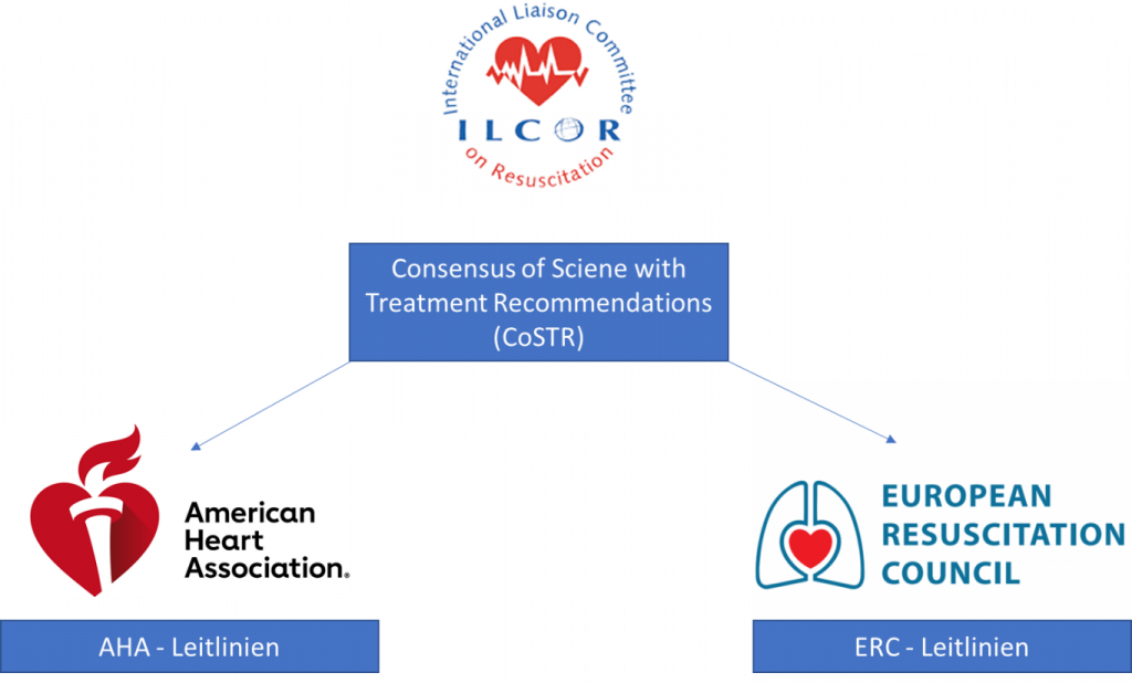 Dabei wird der Stand der internationalen Reanimationswissenschaft regelmäßig gesichtet und kritisch bewertet. Daraus wird dann ein Internationaler Konsensus abgeleitet der Rahmenempfehlungen zur Wiederbelebung beinhaltet. Auf Basis dieser wissenschaftlichen Erkenntnisse und dieses Konsensus werden dann von verschiedenen Gesellschaften konkrete Behandlungsempfehlung in Form von Leitlinien herausgegeben.
